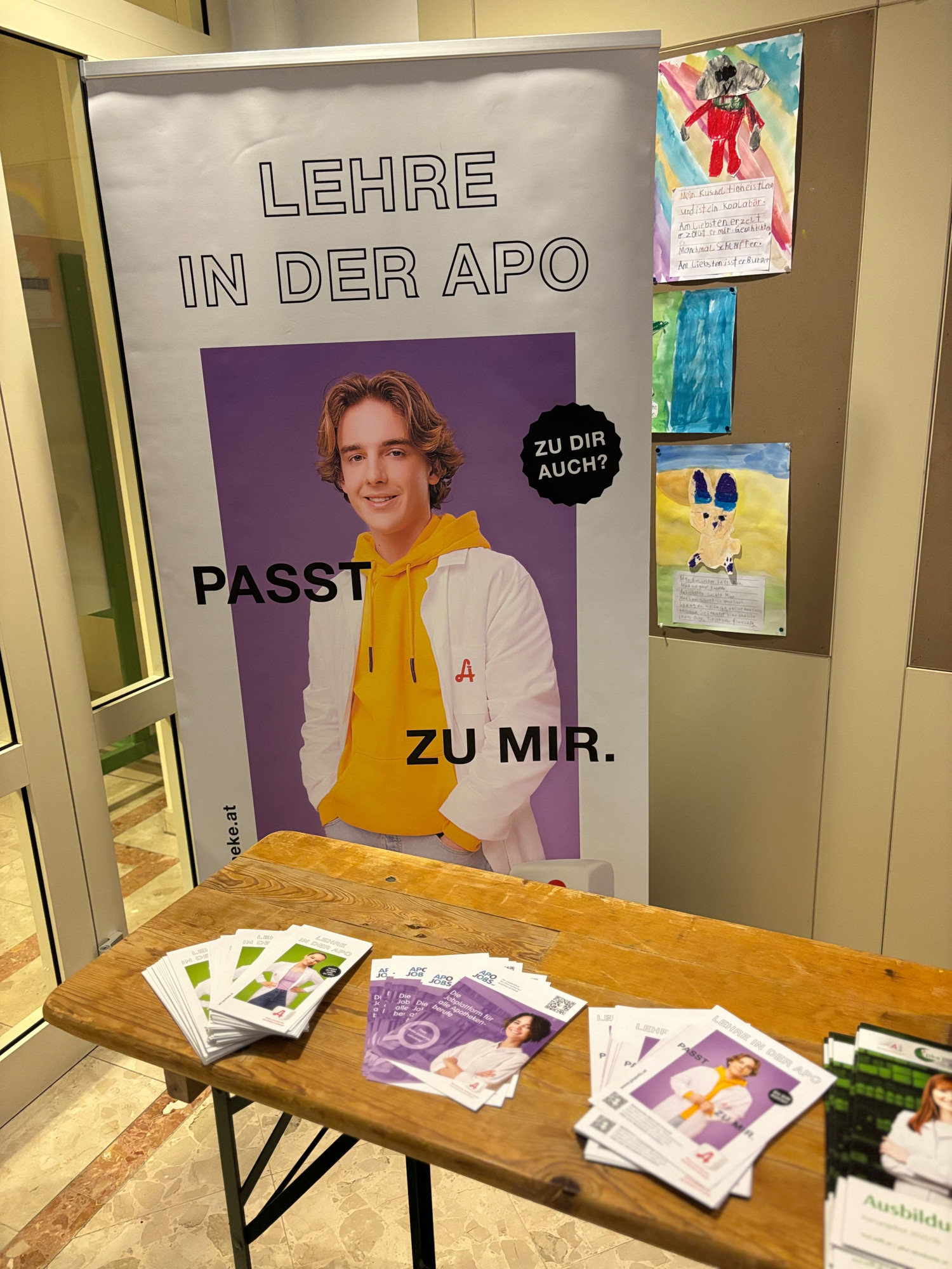 Auf der Lehrlingsmesse in Hofsteig präsentierten Mag. pharm. Braun und ihre Mitarbeiter:innen ihre Apotheke, verkosteten Tees und brachten den PKA Beruf der jungen Generation näher!