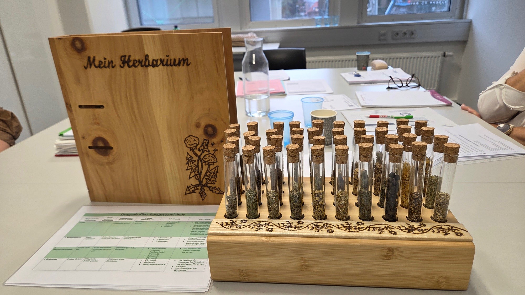 Bei der mündlichen Prüfung in Drogen- und Chemikalienkunde ist ein Herbarium mit 20 Heilpflanzen und eine Drogensammlung mit 40 Teedrogen vorzulegen. Wir empfehlen auch die Mitnahme der Übungsmappe PKA zur mündlichen Prüfung. Es macht einen guten Eindruck, wenn die Prüfer sehen, dass du dich mit allen Bereichen in der Apotheke auseinandergesetzt hast, und das bedeutet für dich auf jeden Fall einen dicken Pluspunkt.